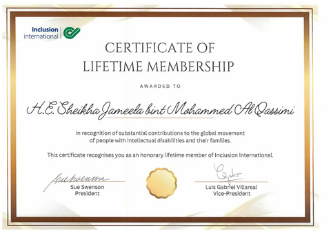 谢哈·贾米拉·卡西米表示,Inclusion International授予的荣誉终身会员资格,不仅是对她个人的褒奖,更是对沙迦酋长殿下远见卓识领导下所建立的人道主义体系的高度认可。该体系以公正为根基,深深植根于社会发展之中,并始终将残障人士的权利与福祉置于优先位置。