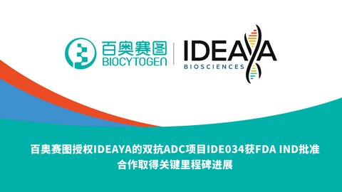 IDE034是一款潜在同类首创的双靶点B7H3/PTK7 TOP1 ADC,由百奥赛图自主开发,并于2024年7月授权给IDEAYA公司。此次IND获批标志着双方合作迈入重要里程碑,为推进IDE034后续的临床开发奠定基础,同时彰显了百奥赛图在双抗ADC发现与开发领域的技术实力。